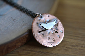 Another pierced bird necklace with some stamping and also I have riveted on some sterling silver flowers.